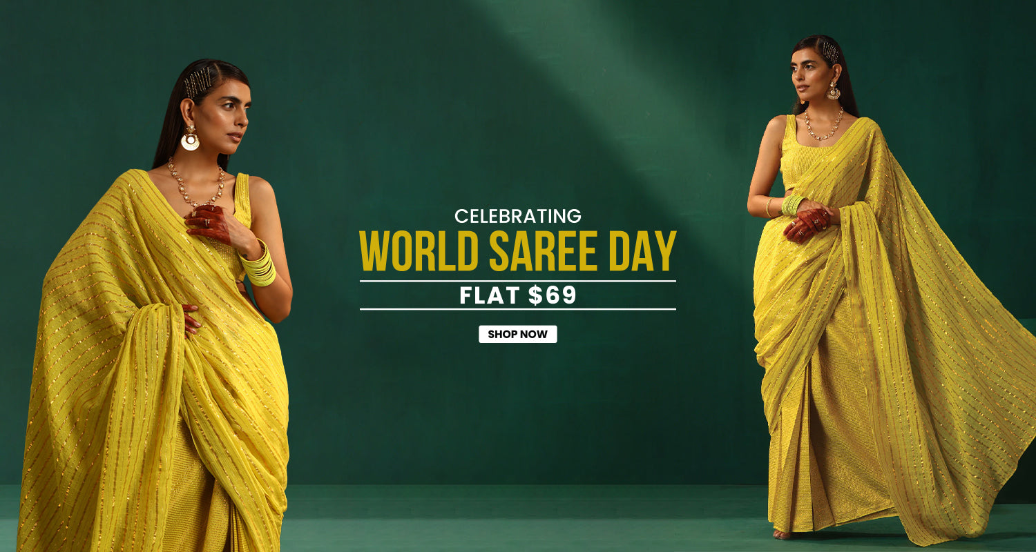 trueBrowns Green Geometric Weave Saree With Contract Unstitched Blouse