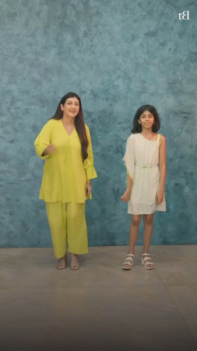 The Penelope - Lime Green Solid Textured Co-Ord Set