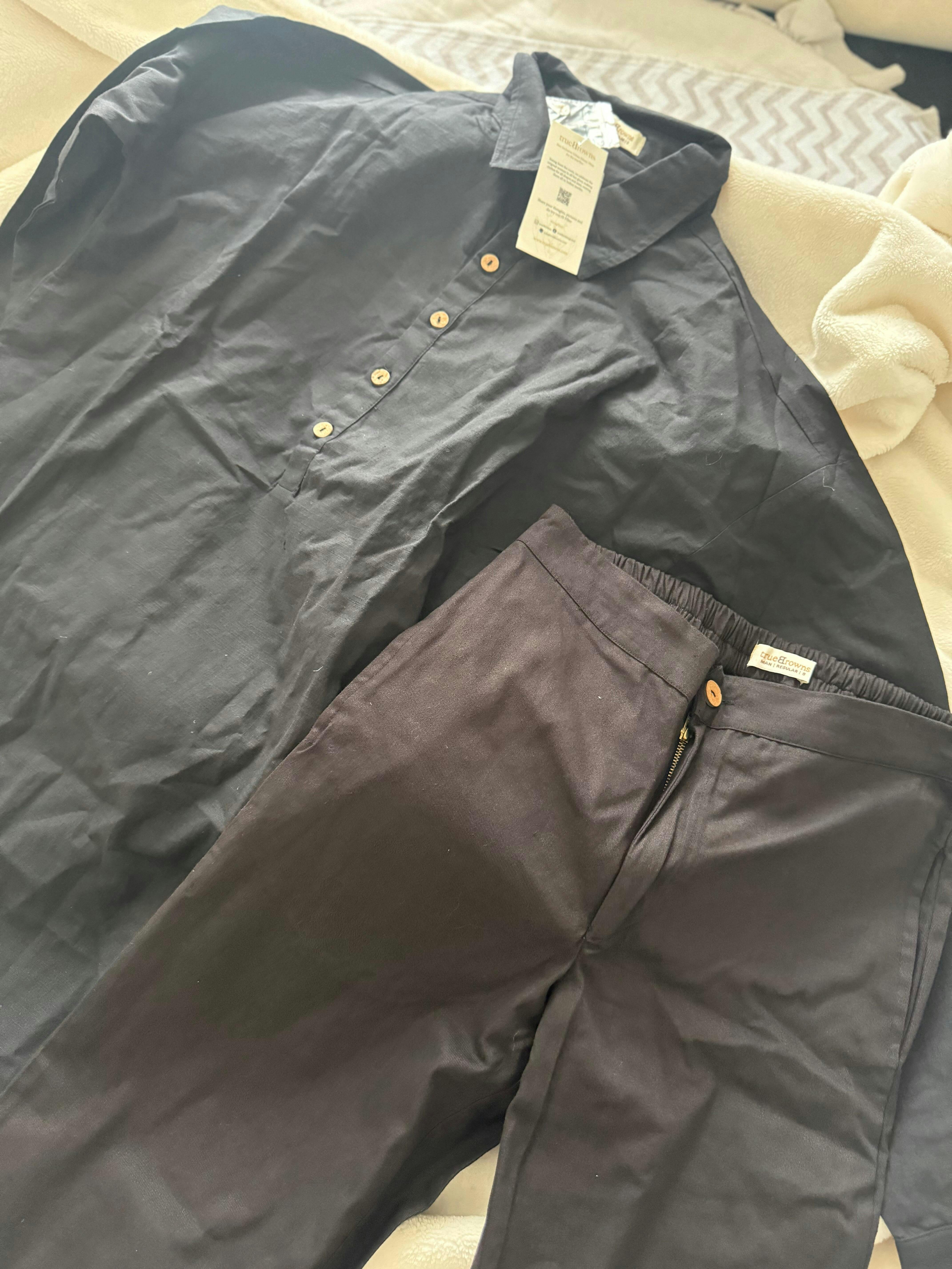 trueBrowns Men's Black Cotton Co-ord set